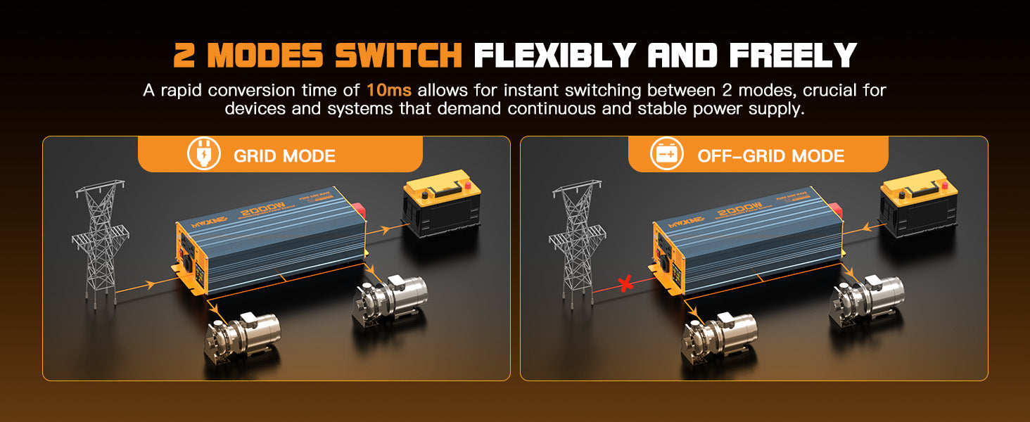 2000W UPS Inverter Auto Switching to Grid and Battery For Sump Pump, Emergency and Power Outage