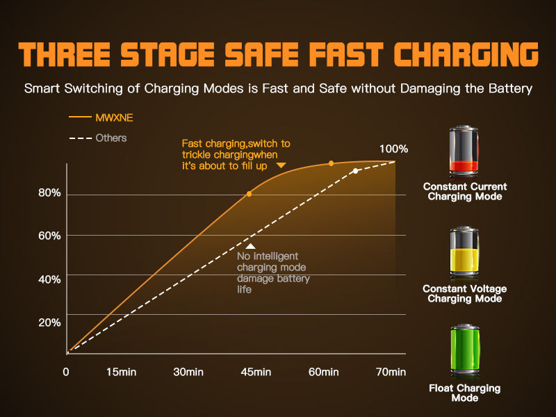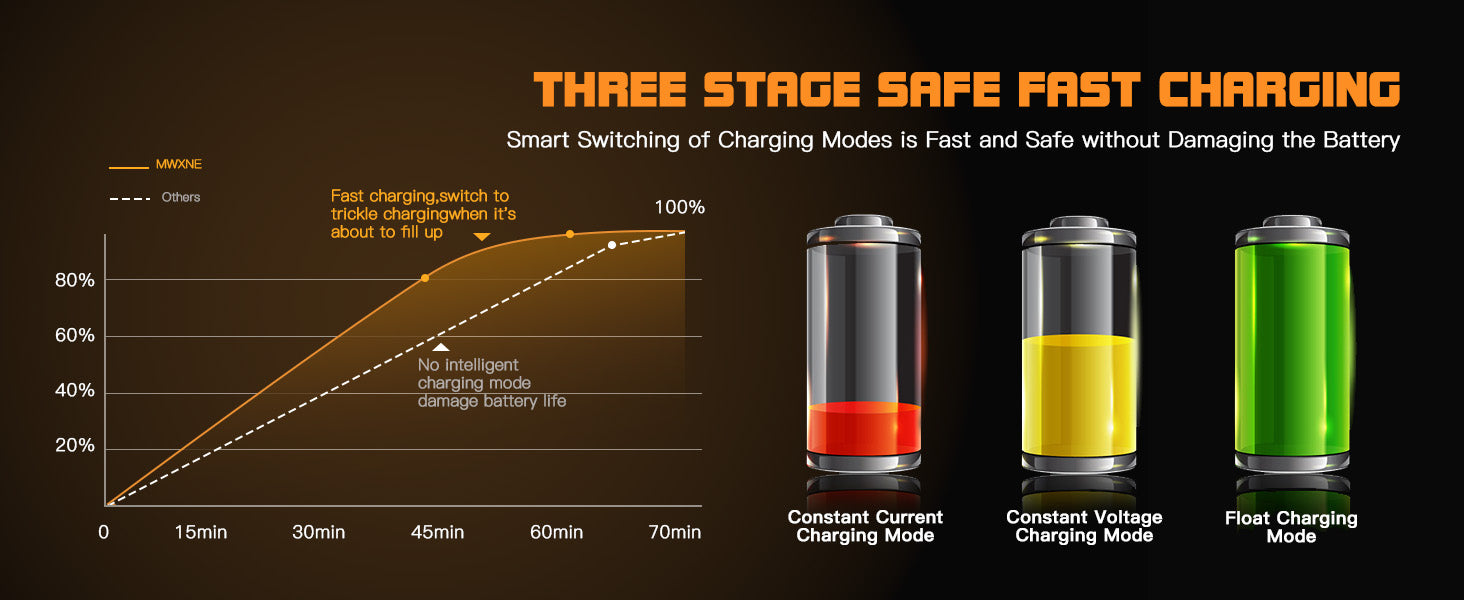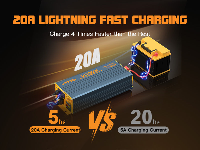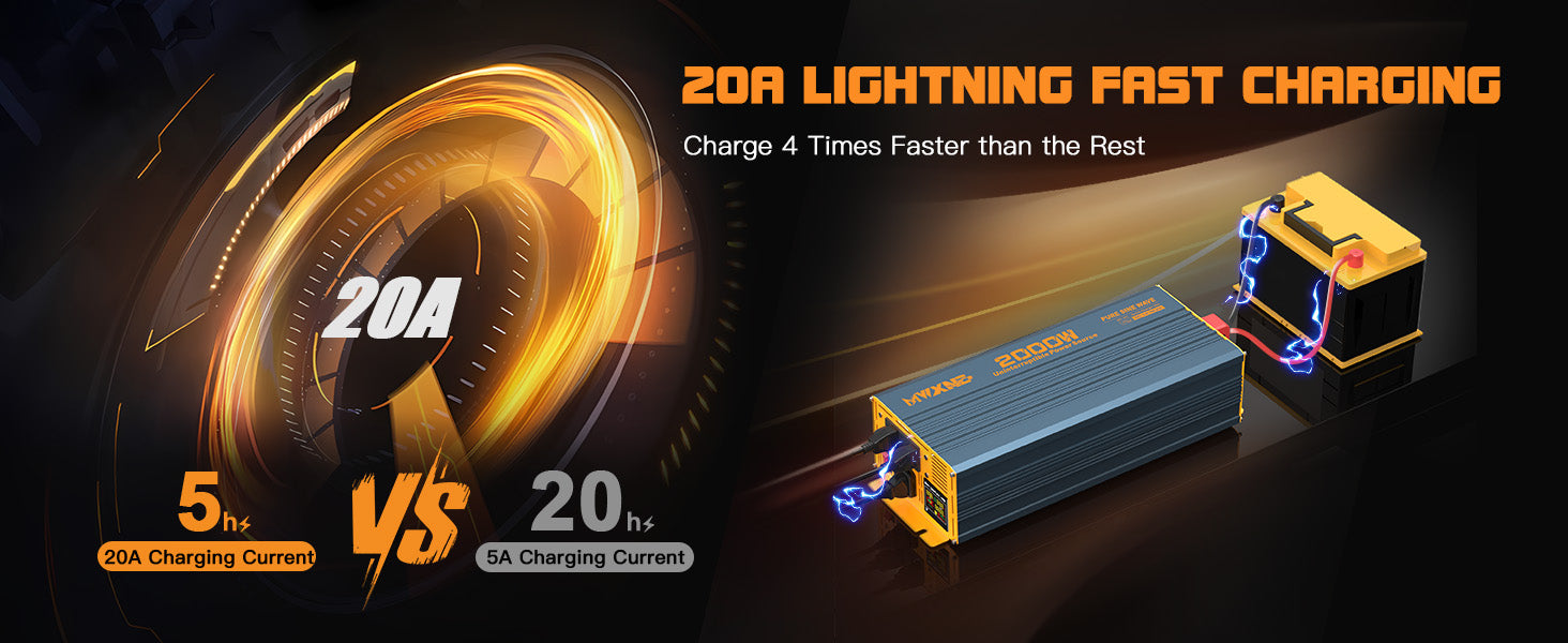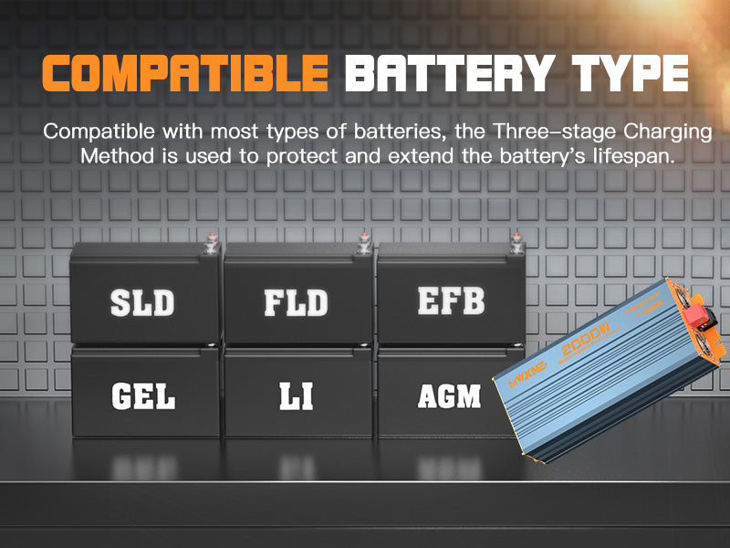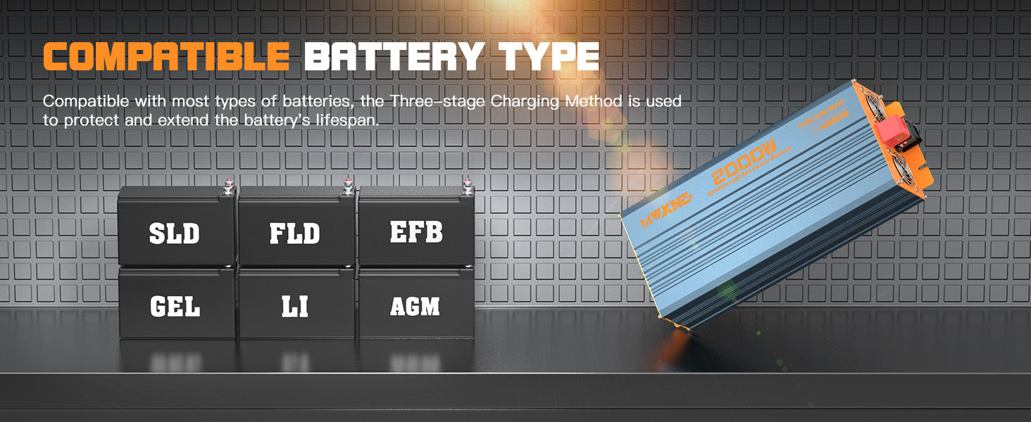 【CHARGING MODE】 The 2000W sump pump battery backup system features a built-in 20A battery charger compatible with rapid charging for most common battery types. Additionally, the MWXNE sump pump battery backup system includes overcharge protection. Once fully charged, the unit will maintain the battery (Sold Separately) through trickle charging.