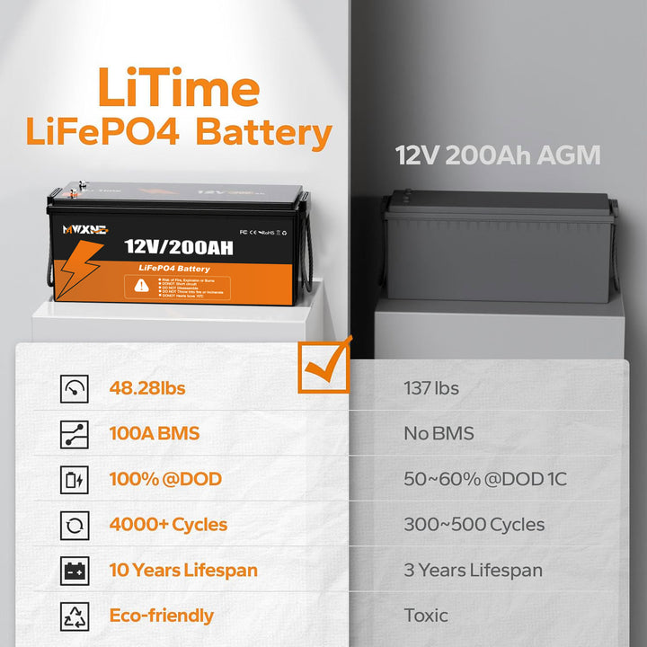 Weighing only 45.85 lbs, the MWXNE 12V 200Ah battery is remarkably lightweight, making it easy to transport and install in various applications. Its compact design and portability make it ideal for RVs, marine, and off-grid use.