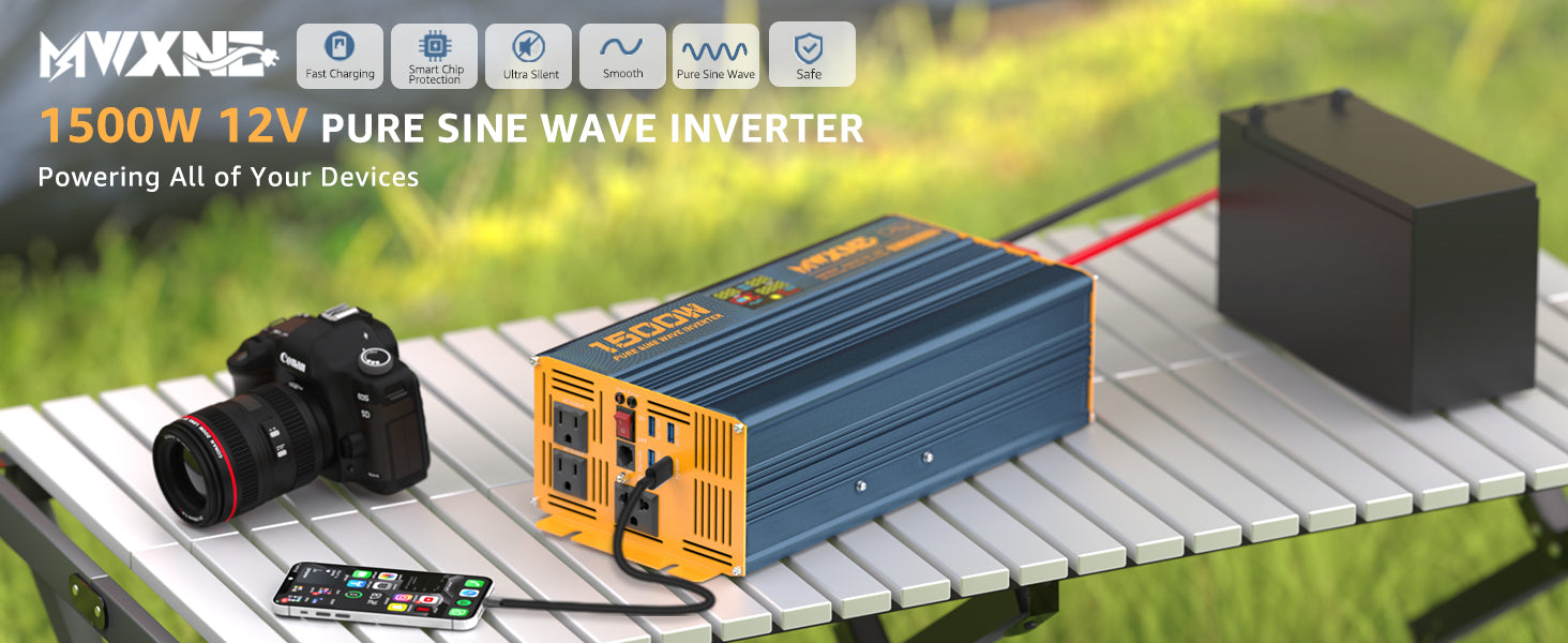 MWXNE 1500W/3000W(Peak) Power Inverter Pure Sine Wave DC 12V to AC 110V 120V for Truck RV