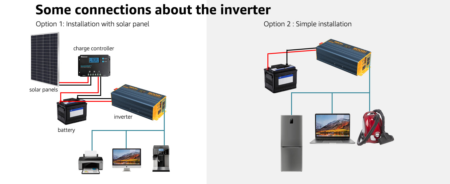 【EASY-TO-USE WIRED & WIRELESS REMOTE】The wireless remote control that allows you to control the inverter at any time from a remote location. And, for the wired remote you can easily turn on/off the switch of the inverter with the function keys on the panel. With the backlight display for better monitoring actual working status. Greatly improves the convenience of your life!