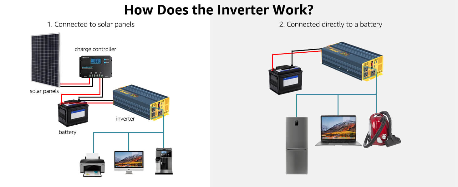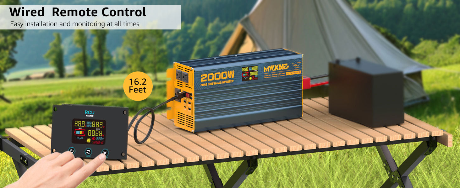 【EASY-TO-USE WIRED & WIRELESS REMOTE】The wireless remote control that allows you to control the inverter at any time from a remote location. And for the wired remote control, you can easily on/off the switch of the inverter with the function keys on the panel. With the backlight display for better monitoring actual working status. Greatly improves the convenience of your life!