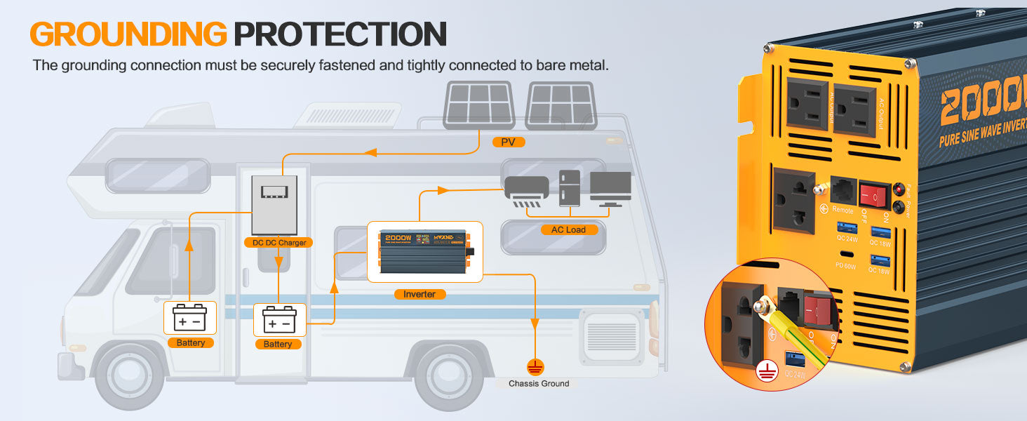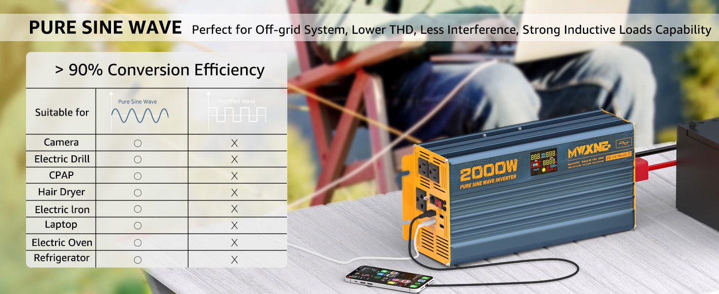 - 2000W inverter efficiently with a 4000W surge for clean and stable operation
